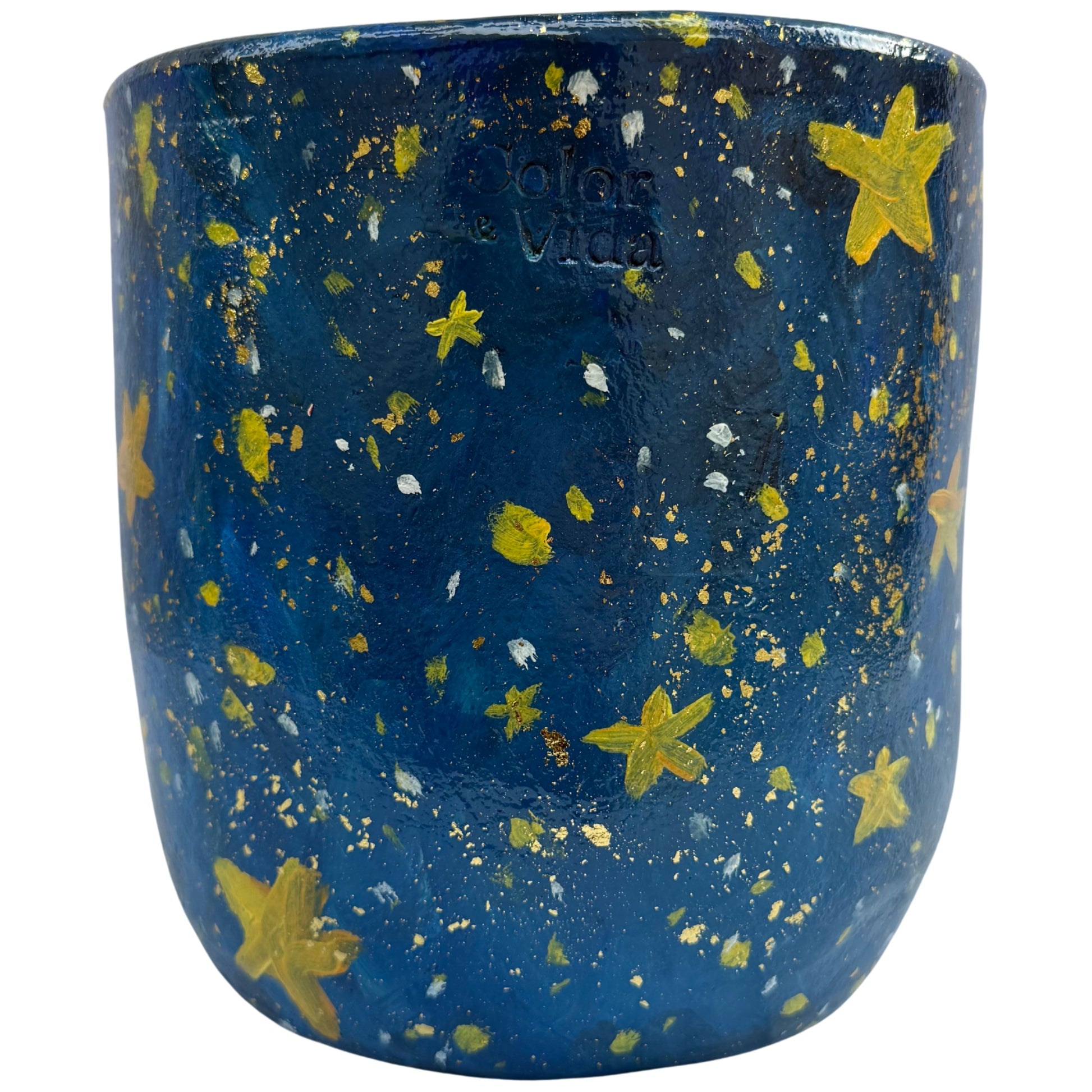 Macetero de greda originario de Pomaire, pintado a mano. Acondicionado para interiores y exteriores. El sello de "Color & Vida“ garantiza la calidad y el origen de la pieza.