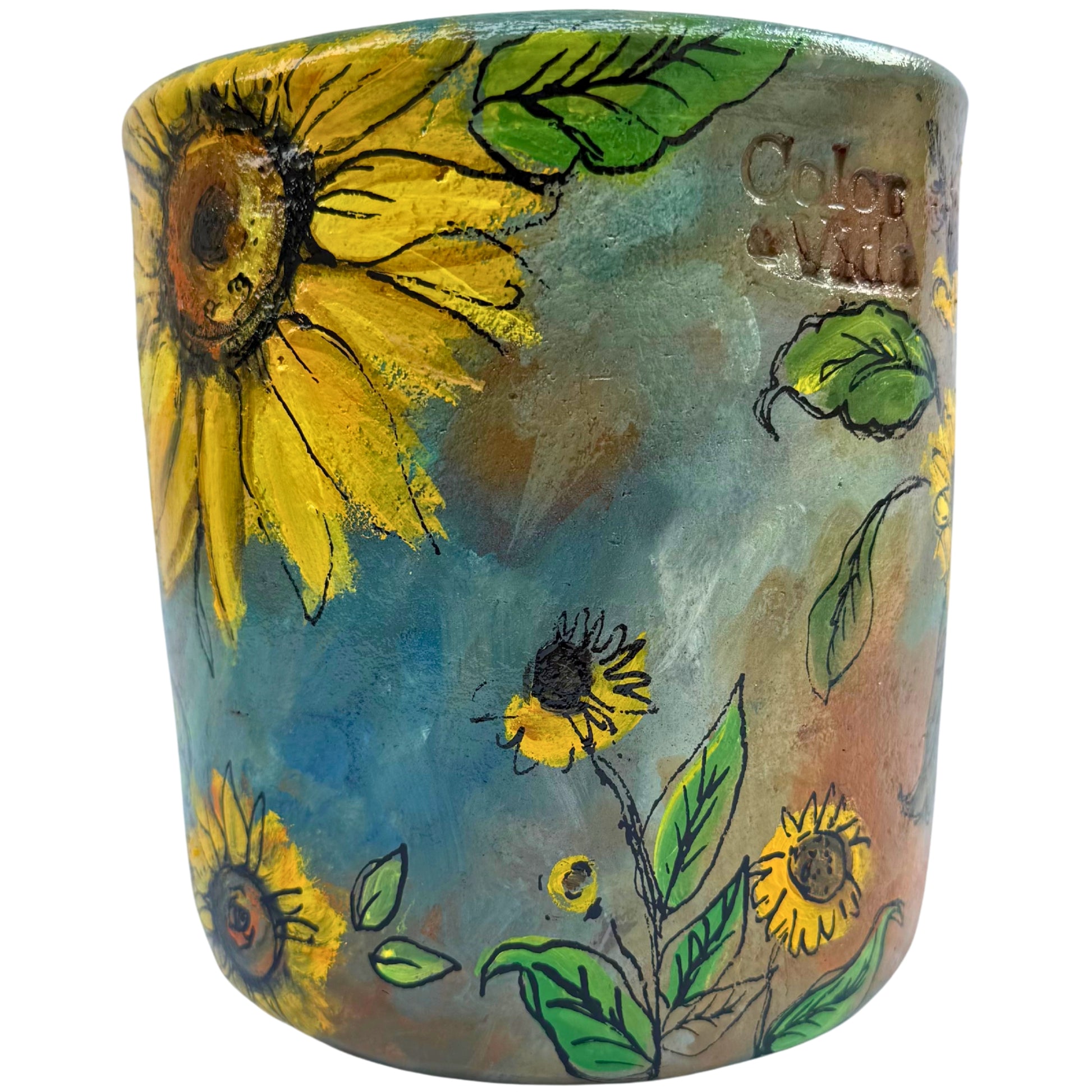 Macetero de greda originario de Pomaire, pintado a mano. Acondicionado para interiores y exteriores. El sello de "Color & Vida“ garantiza la calidad y el origen de la pieza.